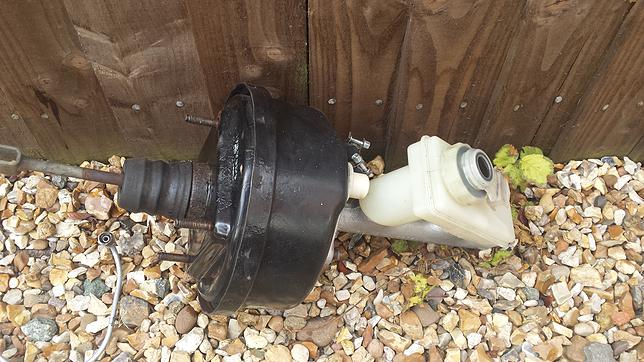 You will now be left with the servo. Disconnect the vacuum hose, The servo is still connect to the pedal box so time to get inside the car.