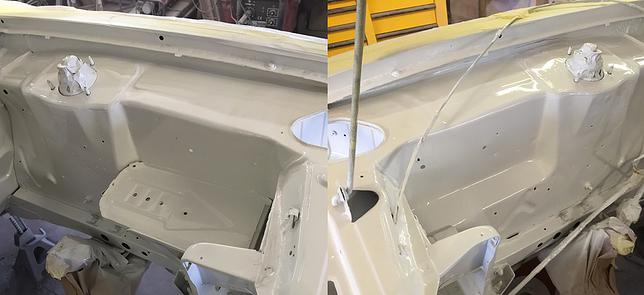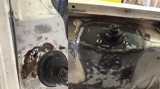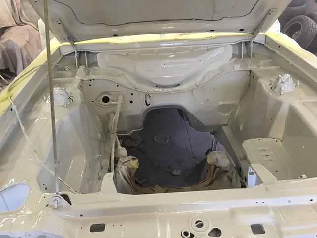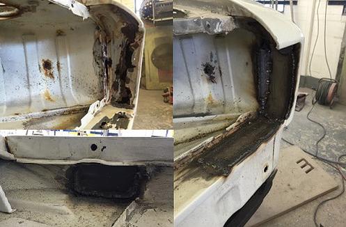 The first job to tackle was the strut tops. New panels purchased from CapriGear made the job a lot easier. Clean up, treat and weld in.