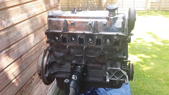 After doing some research and asking around, I decided to also paint the head. Below is a photo of the block with 2 coats of POR15 (apply sparingly) The sump and core plugs were painted in Aluminium silver, again POR15 Engine enamel.